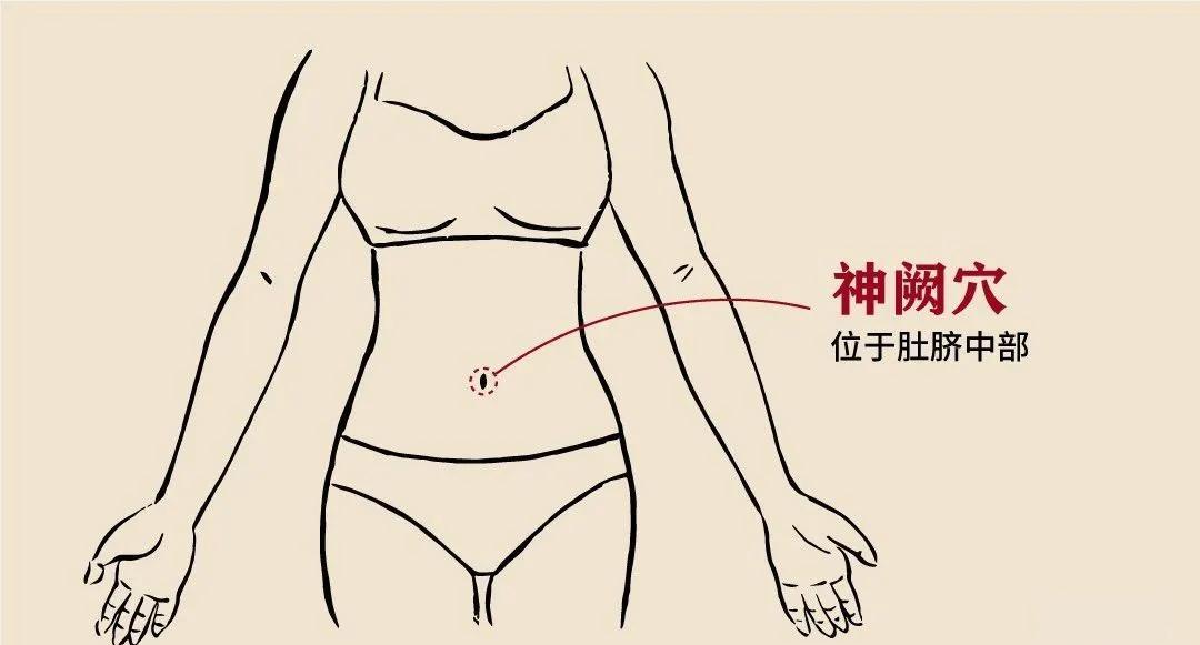 神阙穴位于腹部正中线,脐窝中央。取穴时可采用仰卧位,在肚脐正中央定位。