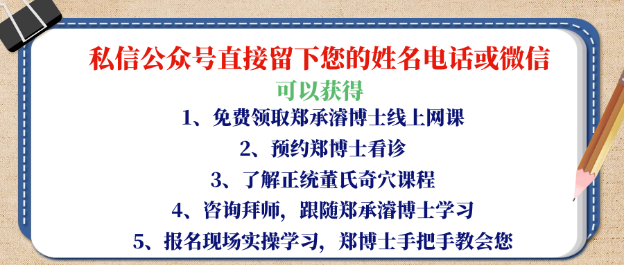 如果您想现场学习董氏奇穴针灸技术以及精准取穴、“百病一针刺血疗法”或者预约郑承濬博士看诊,可以直接私信公众号留下姓名电话或者微信,或长按下方二维码即可报名学习线下课程,还能免费领取郑博士线上网课。
