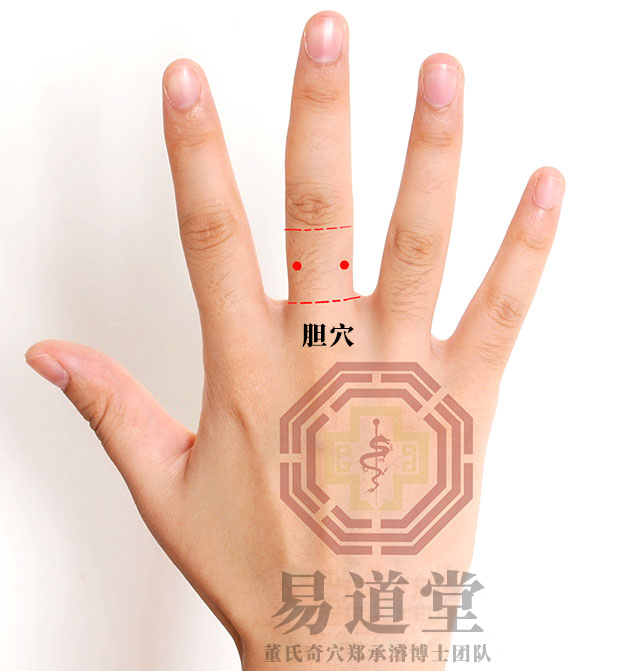 当中指第一节两侧之中点,共二穴;五分针,针一分至二分。