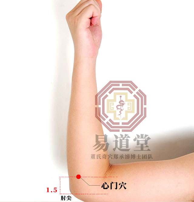 手抚胸取穴,在下尺骨肉侧陷处,距肘尖一寸五分是穴;禁忌双手用穴。